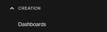 icon to expand the CREATION section of the Dashboards menu to view the menu item: Dashboards.