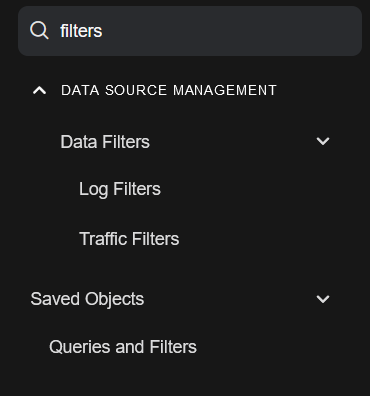 icon to expand Data Filters to view the menu items: Log Filters and Traffic Filters.