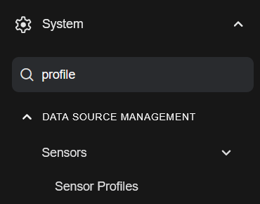 System | DATA SOURCE MANAGEMENT | Sensors | Sensor Profiles |