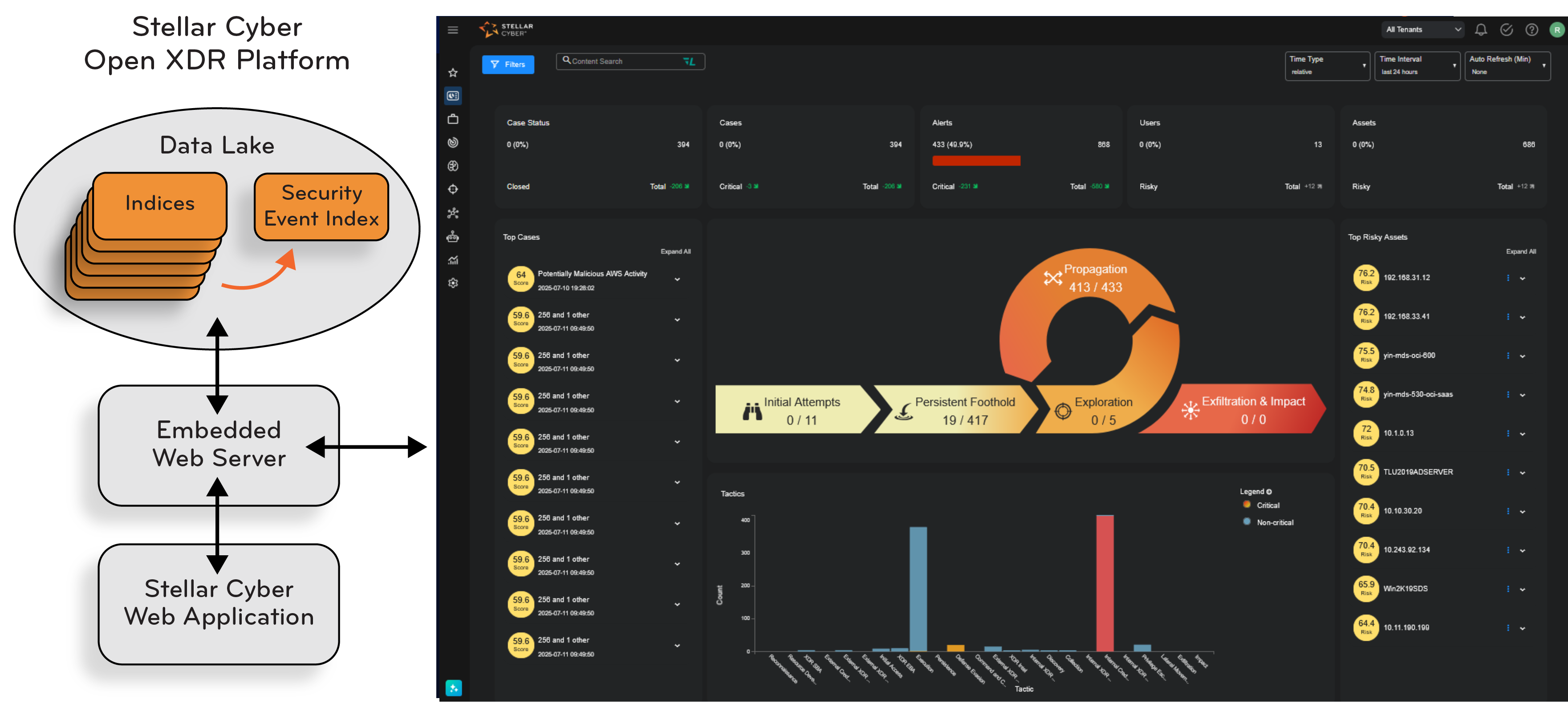 Stellar Cyber also leverages ML to correlate disparate alerts into a coalesced case.