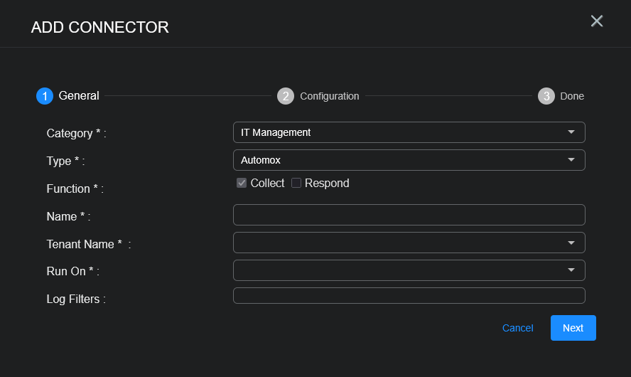 This connector allows Stellar Cyber to ingest logs from Automox and add the records to the data lake. It integrates with Automox APIs to query several content types.