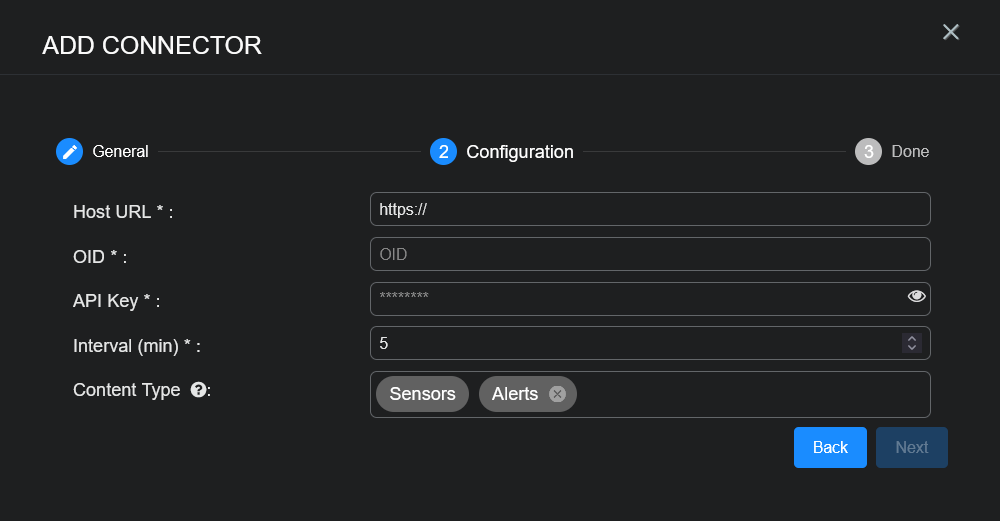 Stellar Cyber conducts a basic connectivity test for the connector and reports a success or failure result. A successful test indicates that you entered all of the connector information correctly.