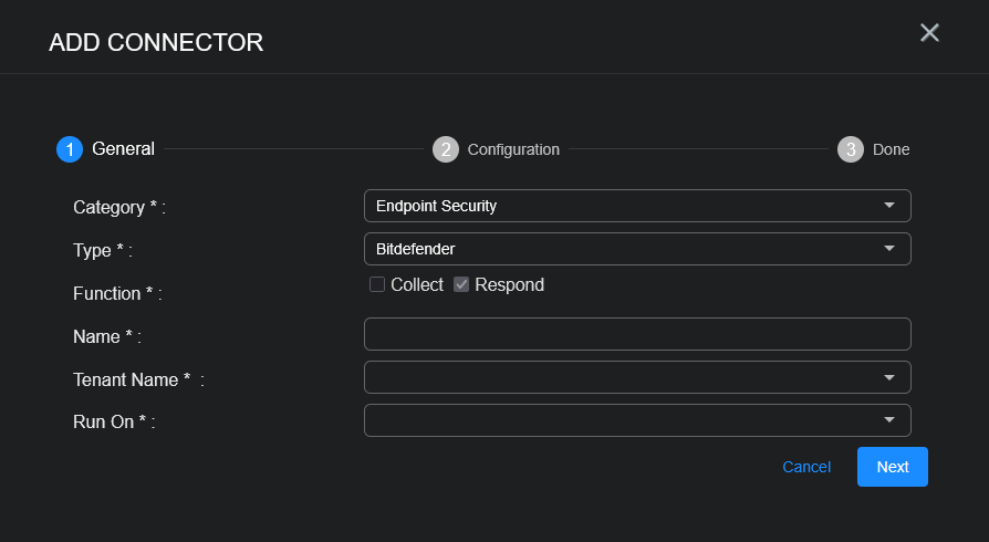Adding a Bitdefender Connector