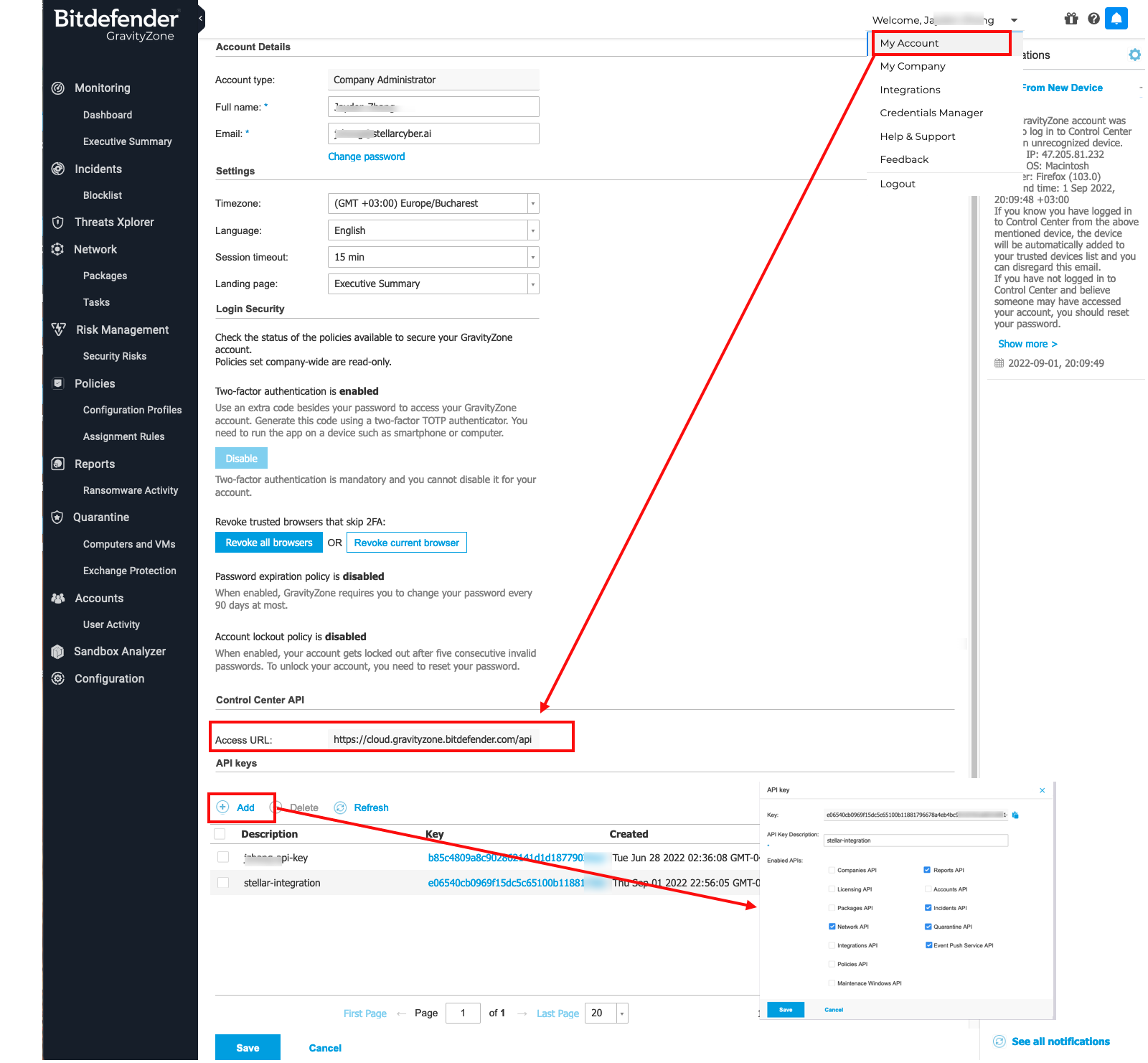 1. Configure Bitdefender API access
