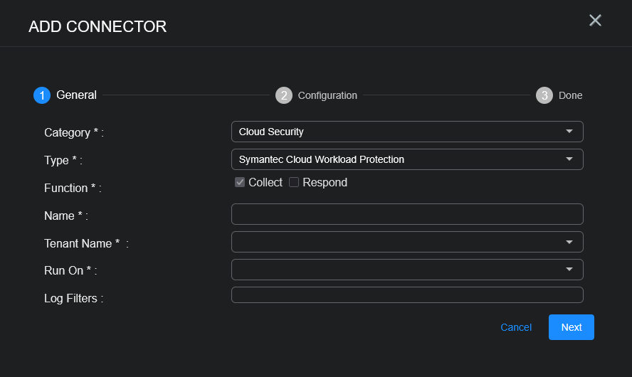 With the configuration information handy, you can add the Broadcom (Symantec) Cloud Workload Protection connector in Stellar Cyber: