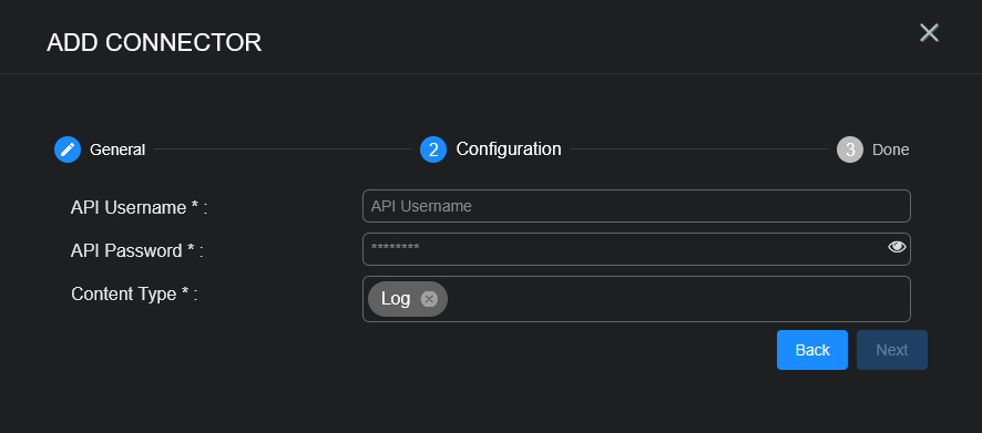 Stellar Cyber conducts a basic connectivity test for the connector and reports a success or failure result. A successful test indicates that you entered all of the connector information correctly.