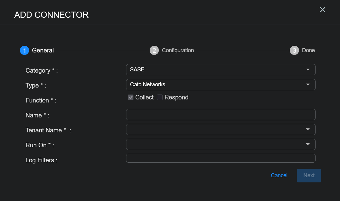 Connectors allow Stellar Cyber to collect data from external sources and add it to the data lake. You create one instance of this connector for each Cato Networks account you want to monitor.