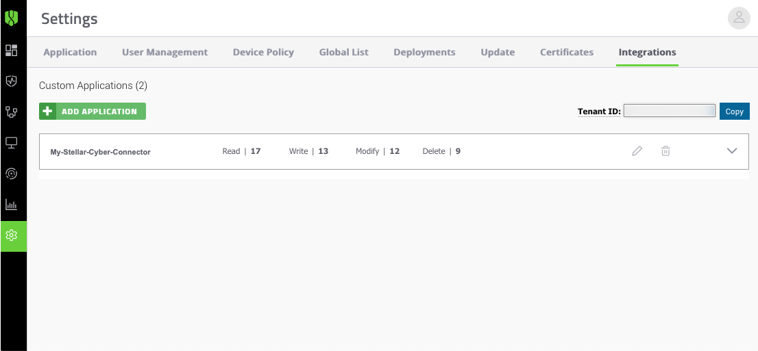 12. Enter the Tenant ID you noted above in Setting up the Stellar Cyber App Integration.