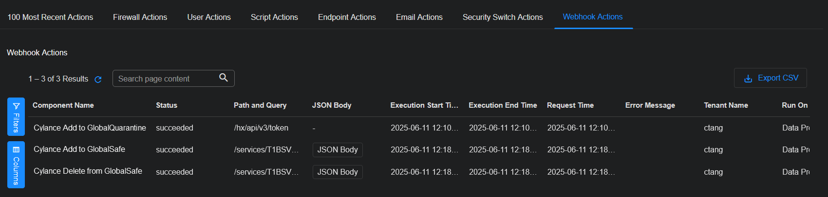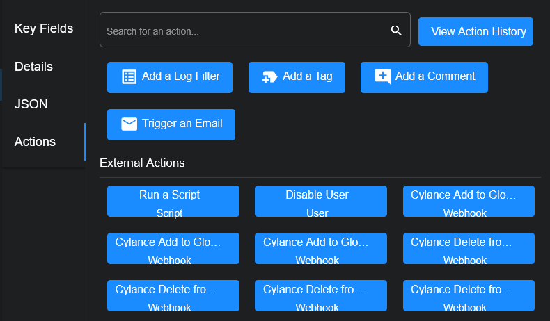 In addition, you can use Cylance responders to configure Webhook actions that can be triggered manually or that can enhance Automated Threat Hunting (ATH) actions.