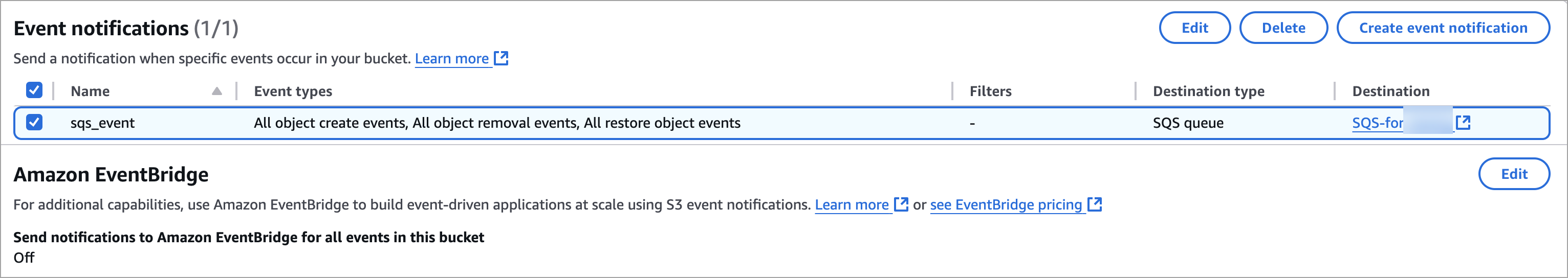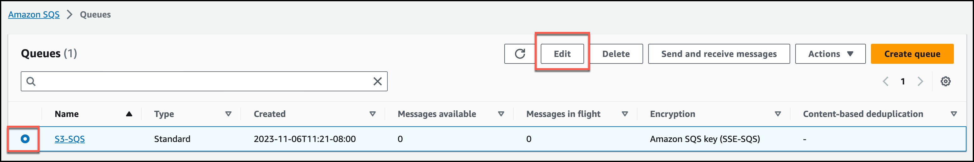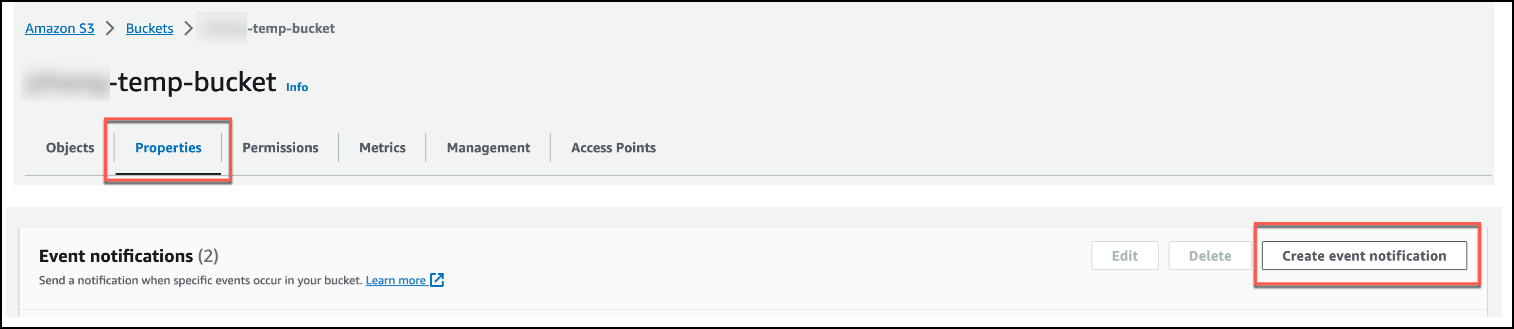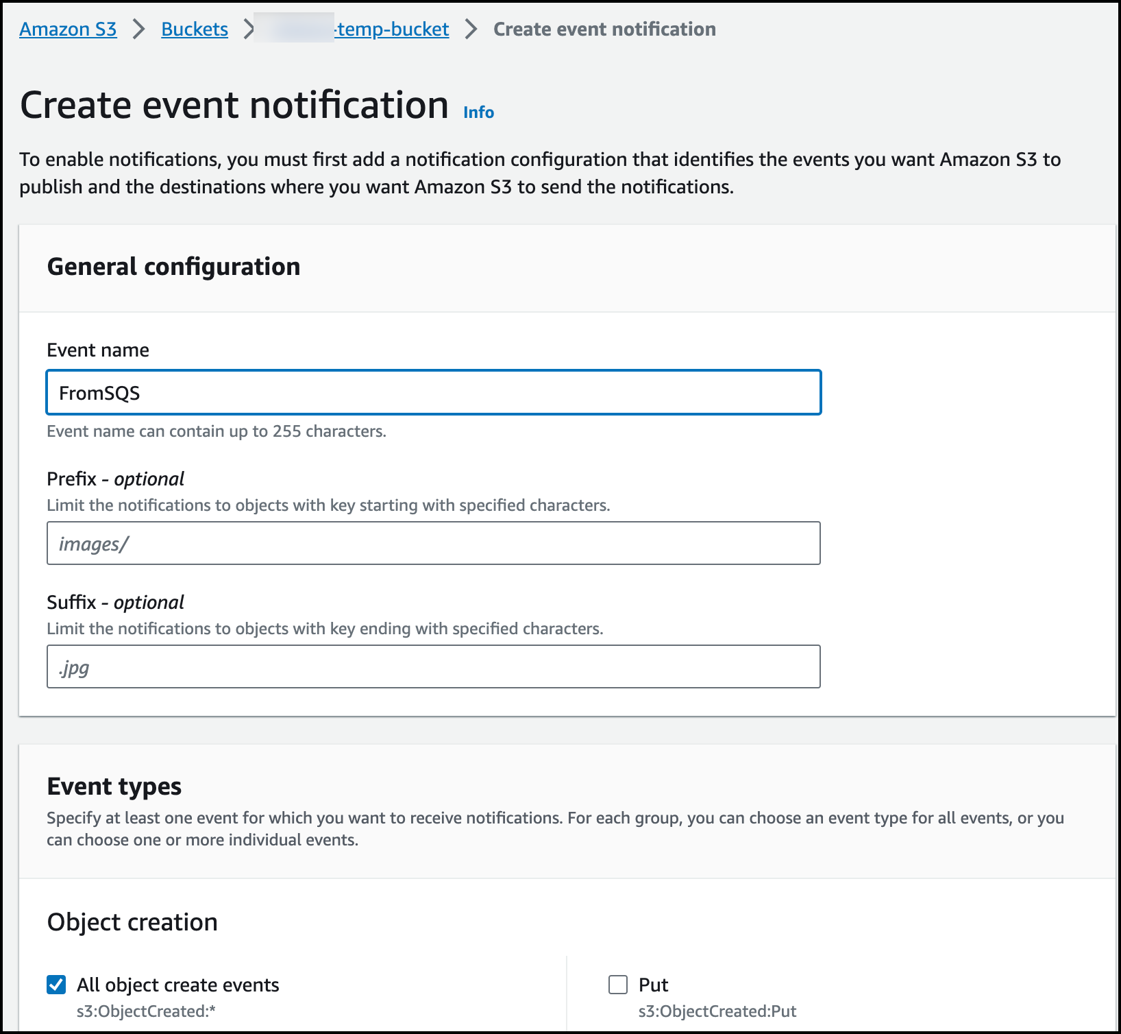 In this procedure you create an SQS queue, attach an access policy to the queue, and add a notification configuration to the bucket.