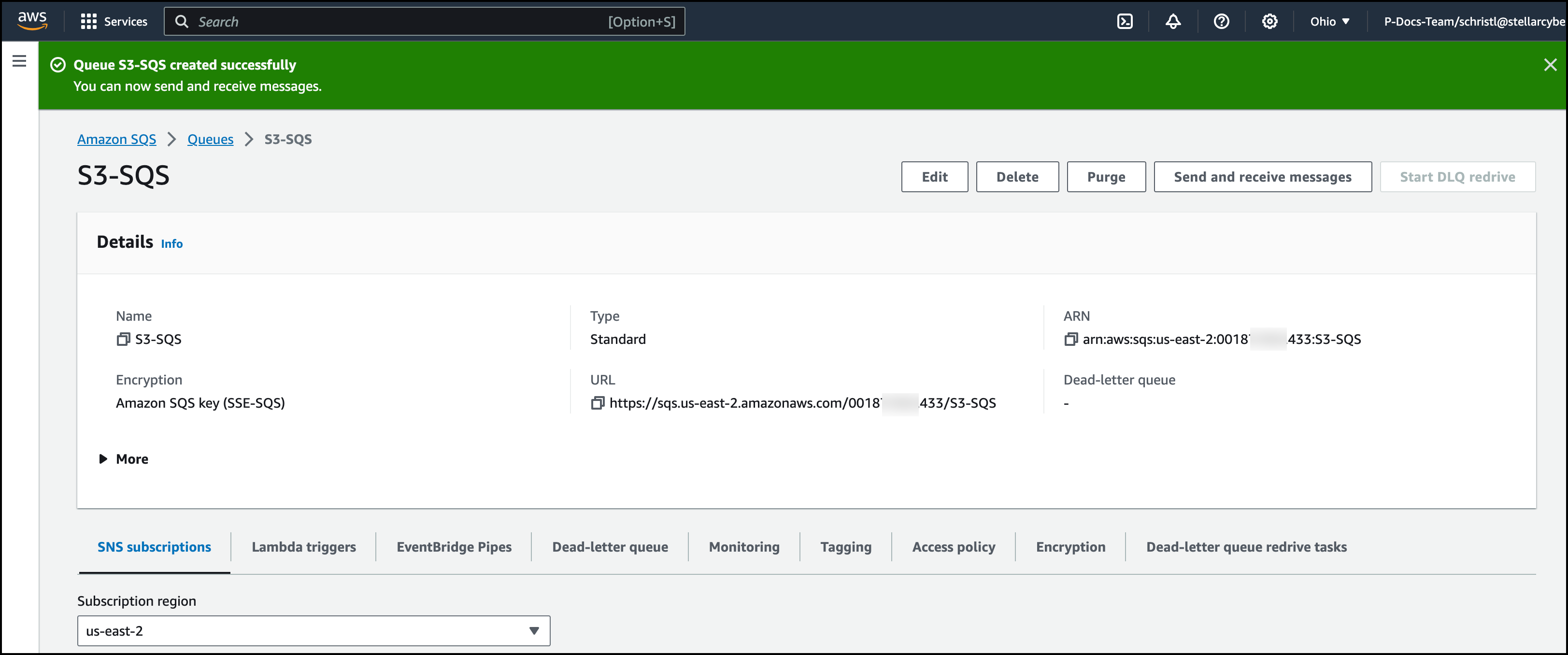 6. Note the URL. This is the SQS Queue URL, which you will need when configuring the connector in Stellar Cyber.