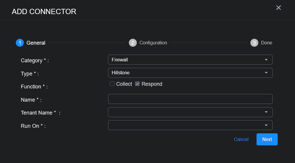 Adding a Hillstone Firewall Connector
