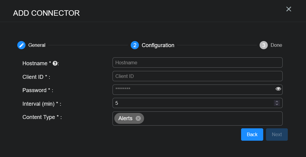 Stellar Cyber conducts a basic connectivity test for the connector and reports a success or failure result. A successful test indicates that you entered all of the connector information correctly.