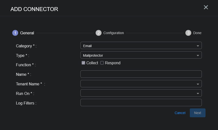 This connector allows Stellar Cyber to ingest logs from Mailprotector and add the records to the data lake. This connector integrates with the Mailprotector API to ingest logs for each Mailprotector tenant.