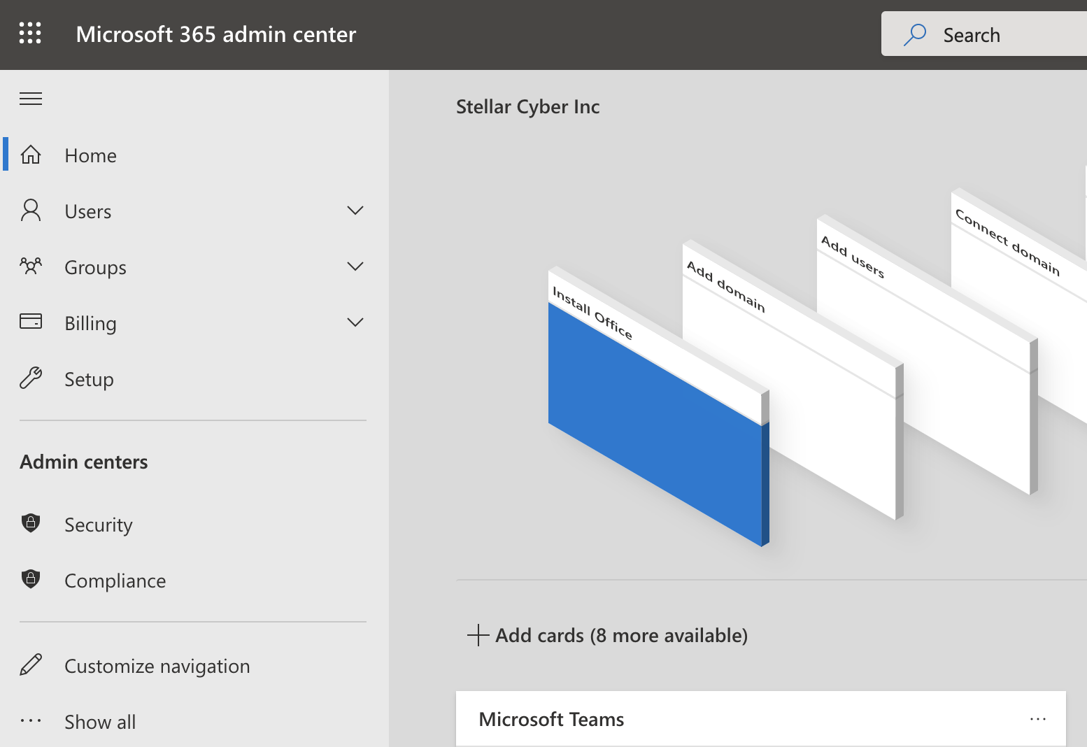 3. Under Admin centers click Security. The Security & Compliance page appears.