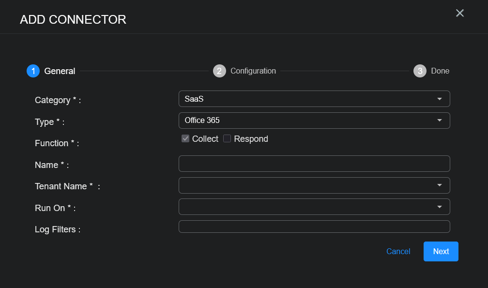 3. Add the connector in Stellar Cyber
