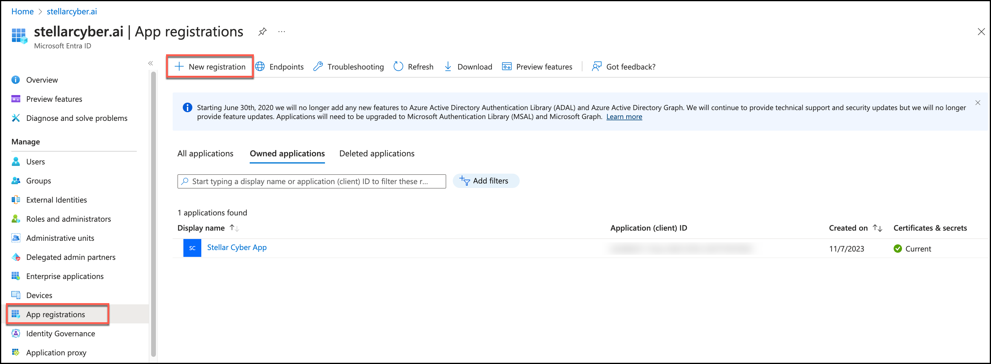 3. In the navigation pane, select App registrations.