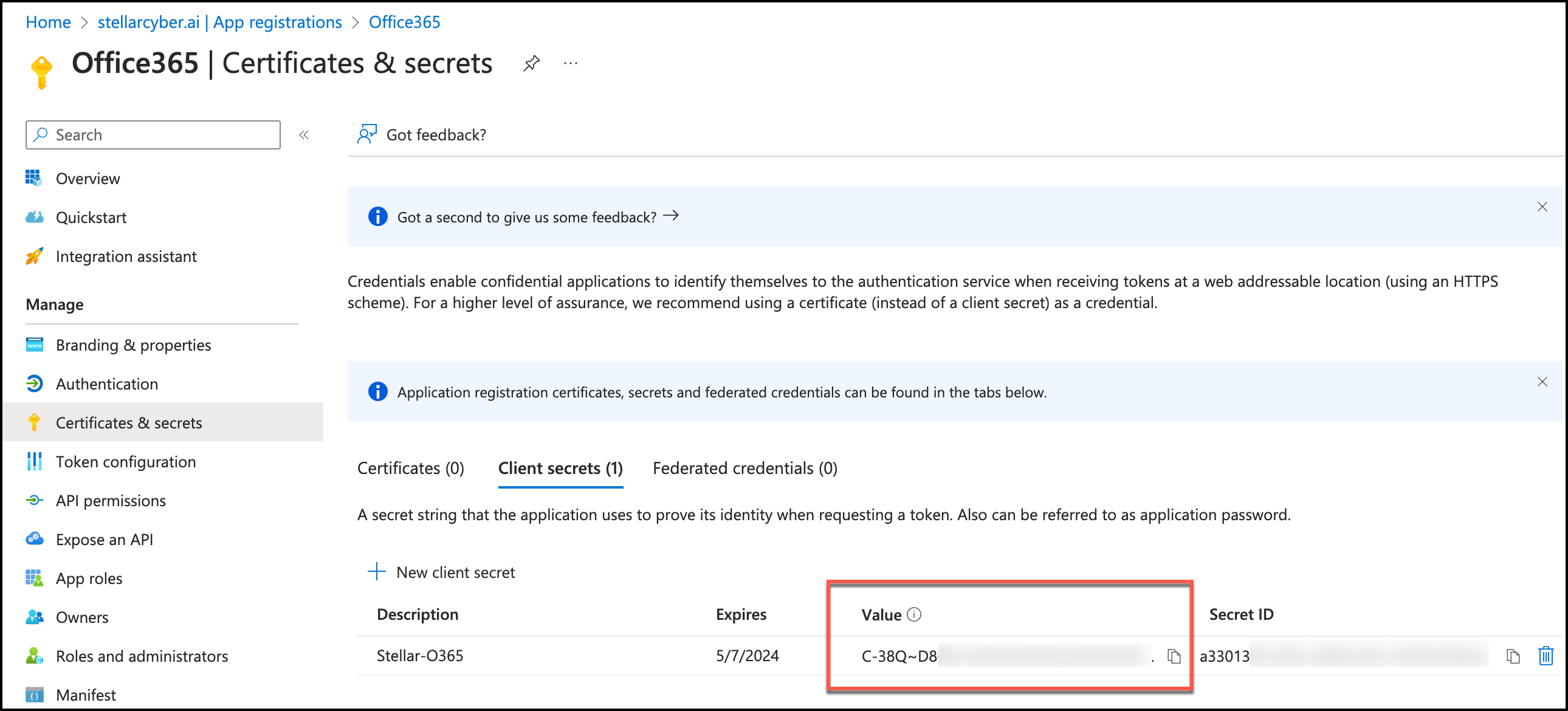 16. When the permissions are granted, in the navigation pane, click Certificates & secrets.