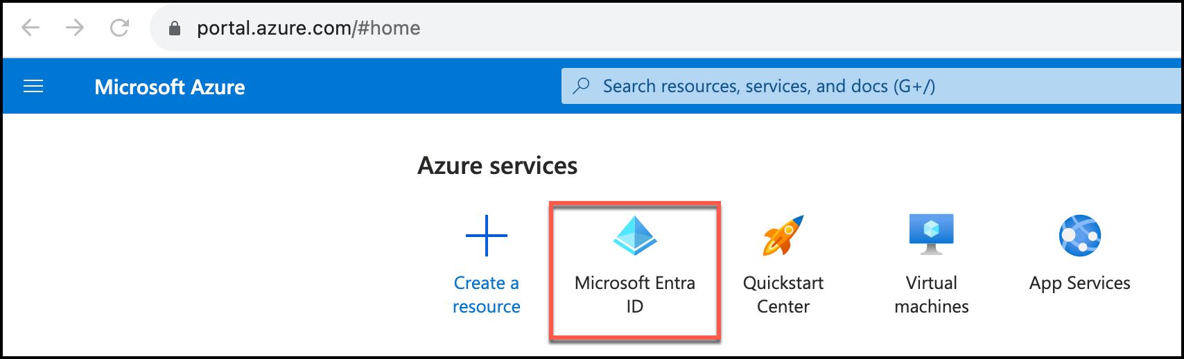 2. From Azure services, select Microsoft Entra ID.