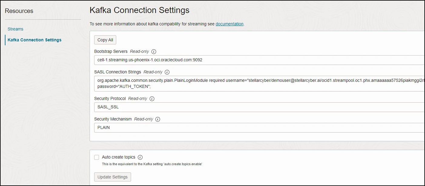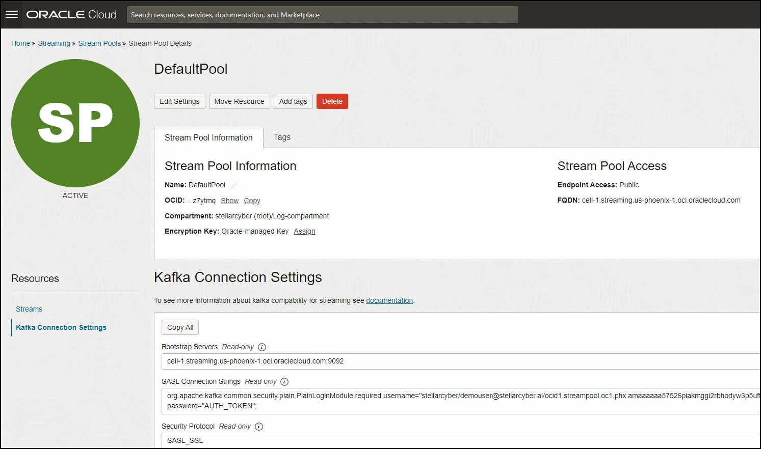 Username: stellarcyber/OracleIdentityCloudService/StreamUser/ocid1.streampool.oc1.phx.amaaaaaa57526pia6d4ng2pyndugjosjxxxxxxxxx