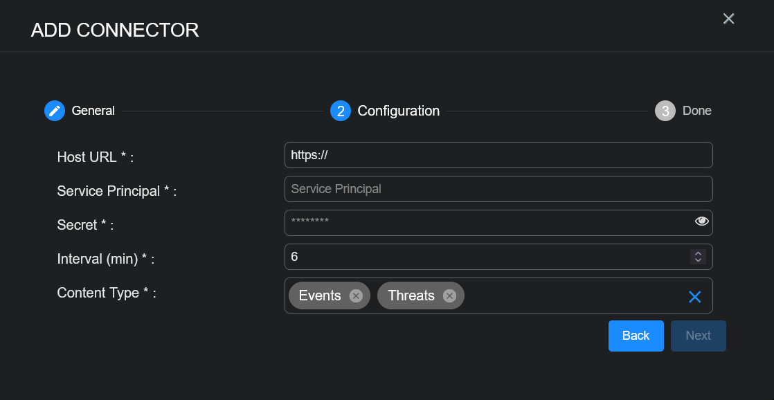 12. Enter the Host URL, for example, https://tap-api-v2.proofpoint.com.