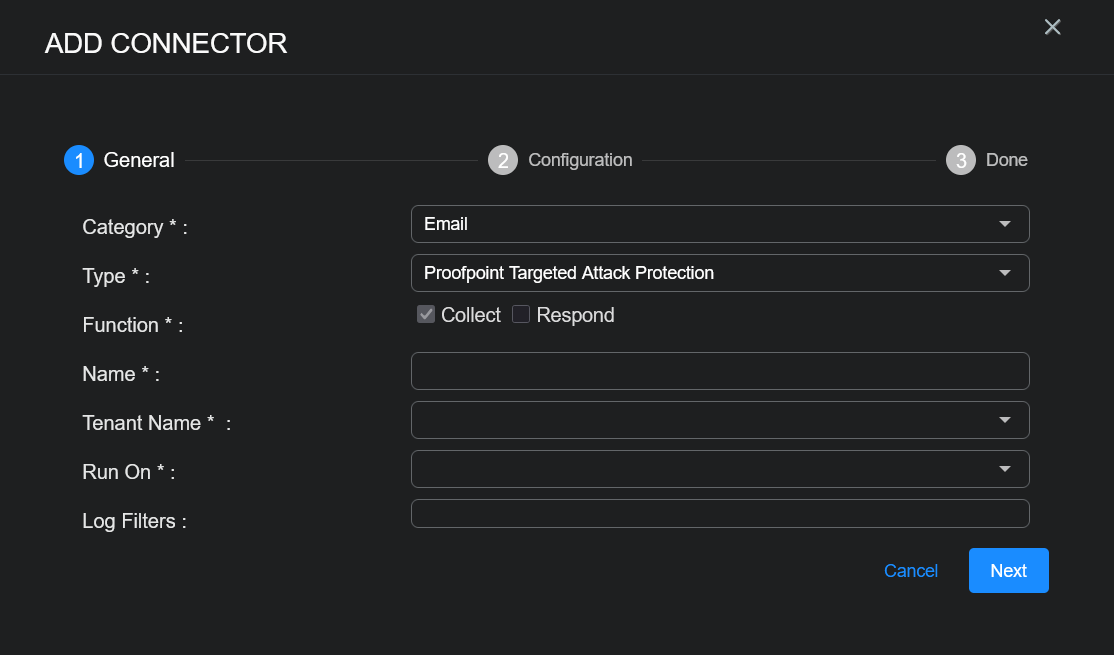 To add a Proofpoint TAP connector in Stellar Cyber: