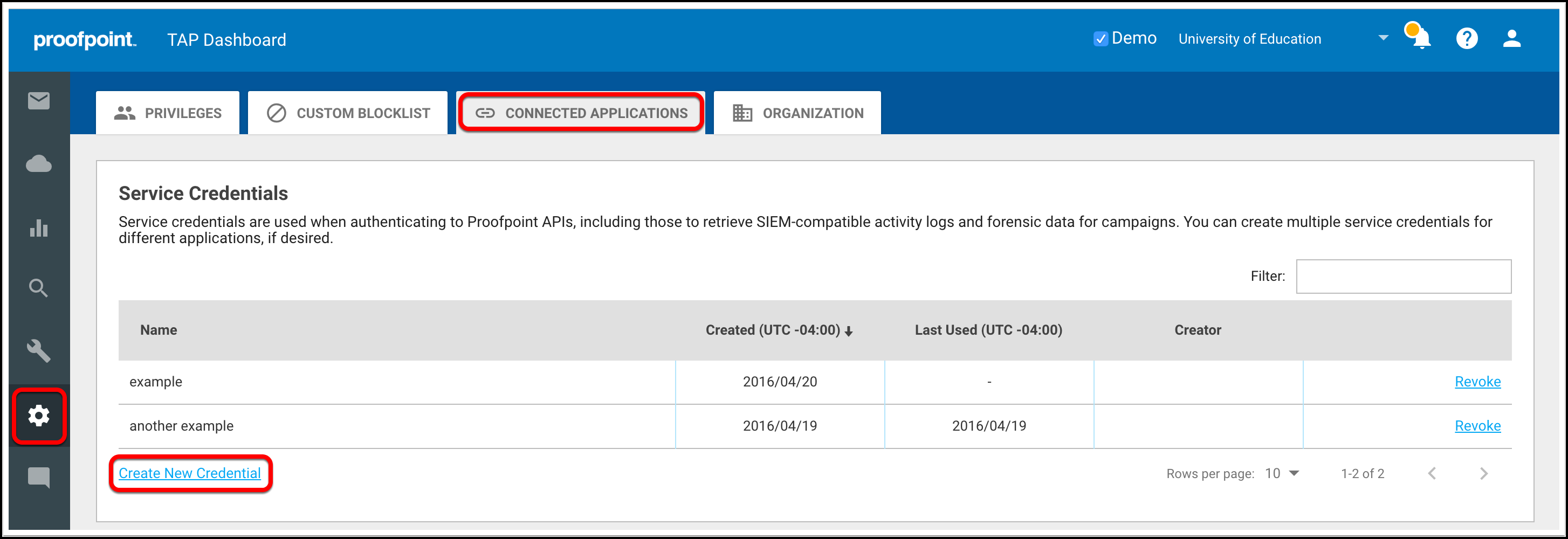 1. Log in as an administrative user to https://threatinsight.proofpoint.com.