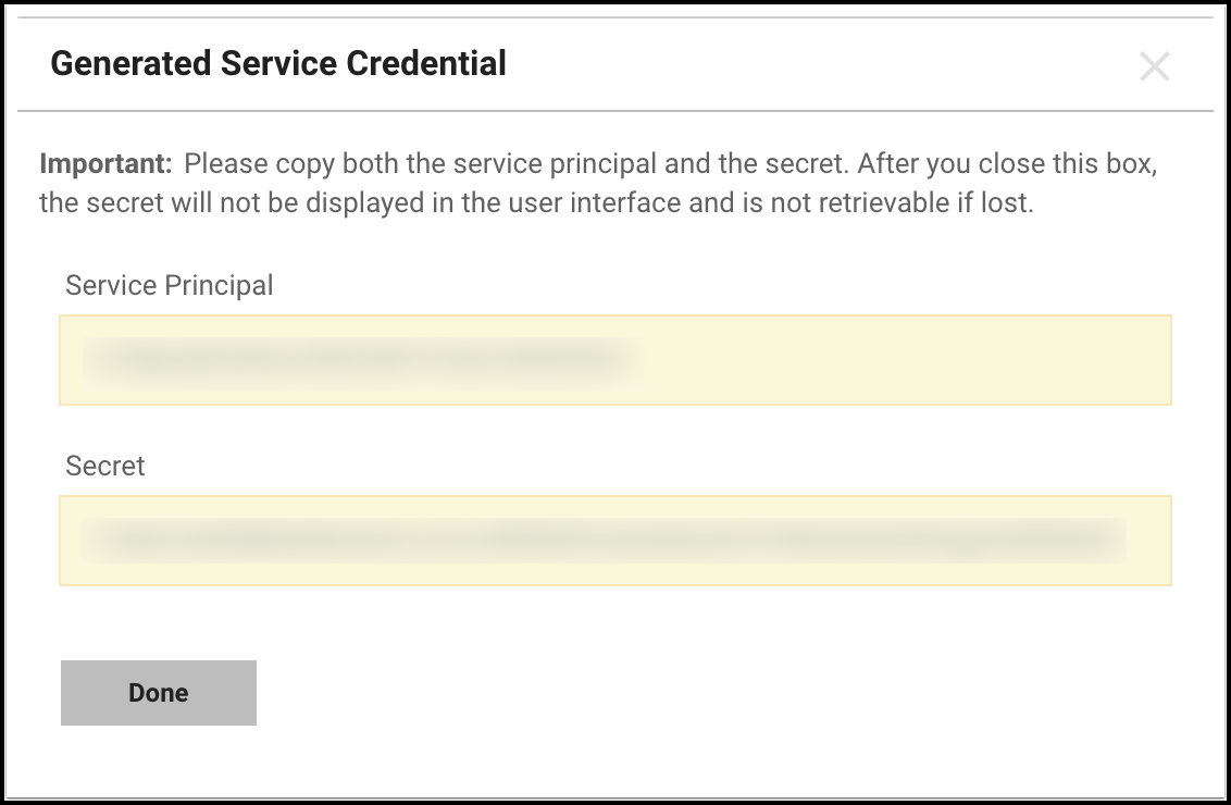 Make sure to copy these credentials as they will not be available after the following dialog is closed.