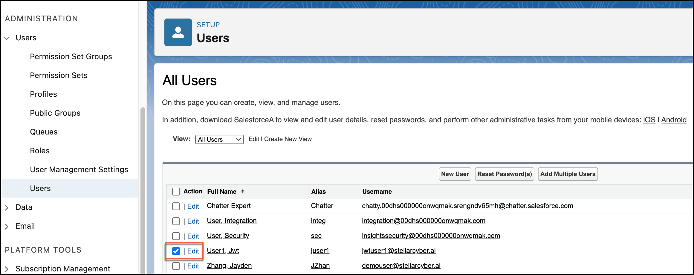 1. Under ADMINISTRATION, navigate to Users |  Users, click New User, and click Edit.