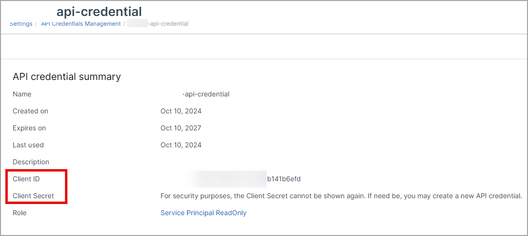 The configuration fields for the Client ID / Client Secret Auth Method are as follows.
