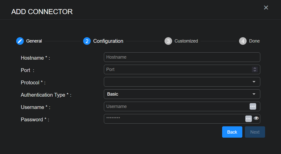 2. If you choose Basic, in addition to Hostname, Port, and Protocol: