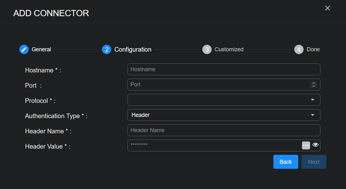 3. If you choose Header, in addition to Hostname, Port, and Protocol: