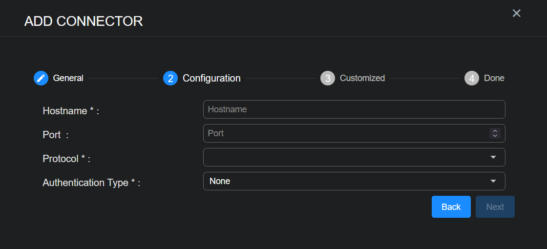 The General tab of the Add Connector screen appears. The information on this tab cannot be changed after you add the connector.
