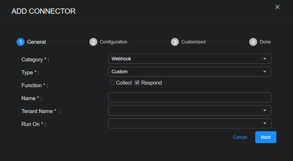 This document describes how to configure the Universal Webhook Responder connector. To manually trigger an action with the Universal Webhook Responder, refer to External Actions: Webhook on the Threat Hunting page. To perform ATH actions with the Universal Webhook Responder, refer to Webhook Responder Action on the ATH Playbook page.