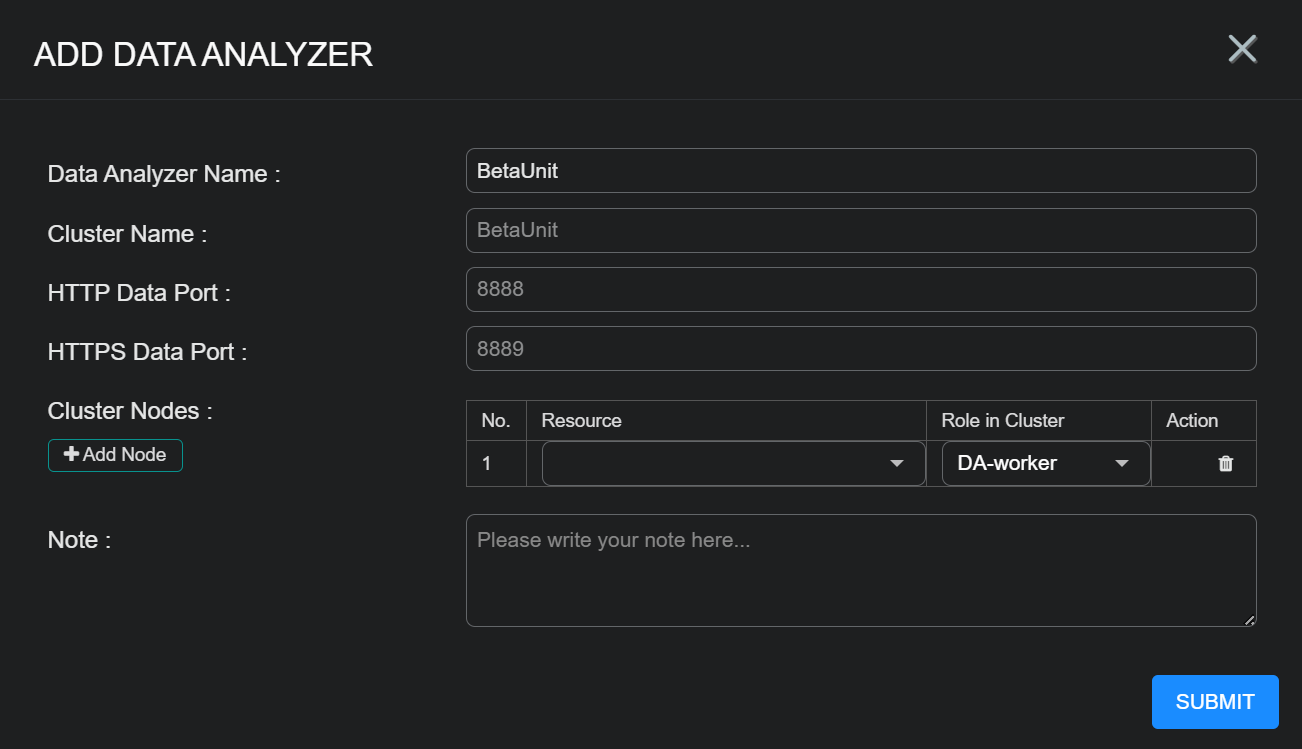 - Cluster Name – The name of the cluster to which the DA will belong.