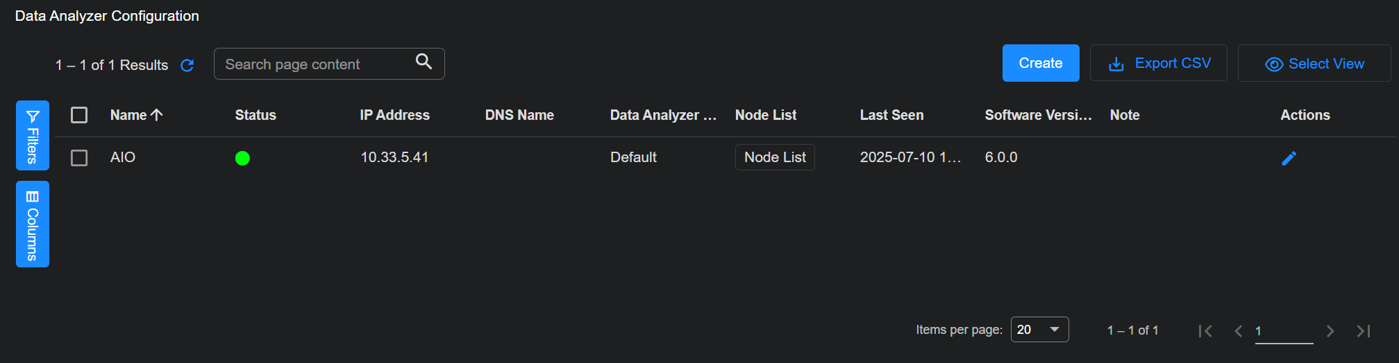 Click Create to add a new Data Analyzer to the table. See the following section for a description of this process.