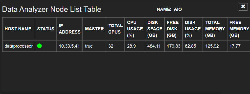 - Cluster Nodes – The cluster nodes that make up the Data Analyzer. This is shown as a table below this field with the following controls: