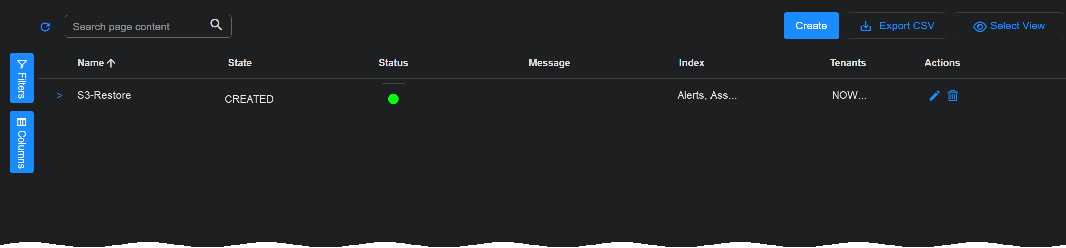 Click Submit. Stellar Cyber adds the restore task to the list, as illustrated below: