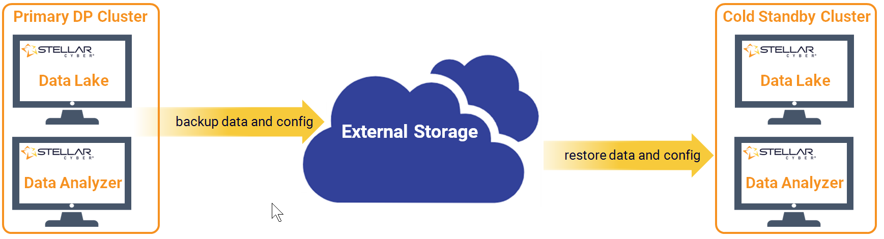 Medium- to long-term data retention and restoration. Cold data must be restored to Stellar Cyber before it can be analyzed. |