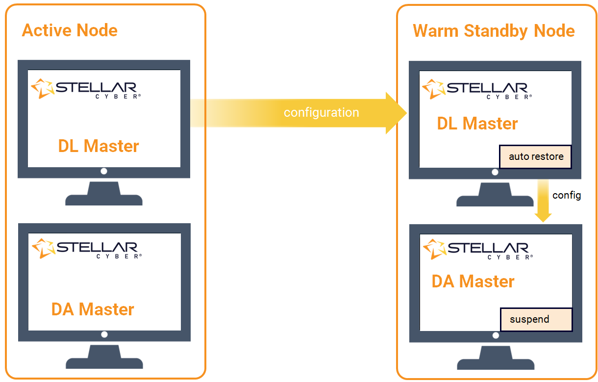 The exception to this rule is for the DA-master node in cloud deployments. The DA master can be restarted in the cloud more quickly than the warm standby can take over operations.