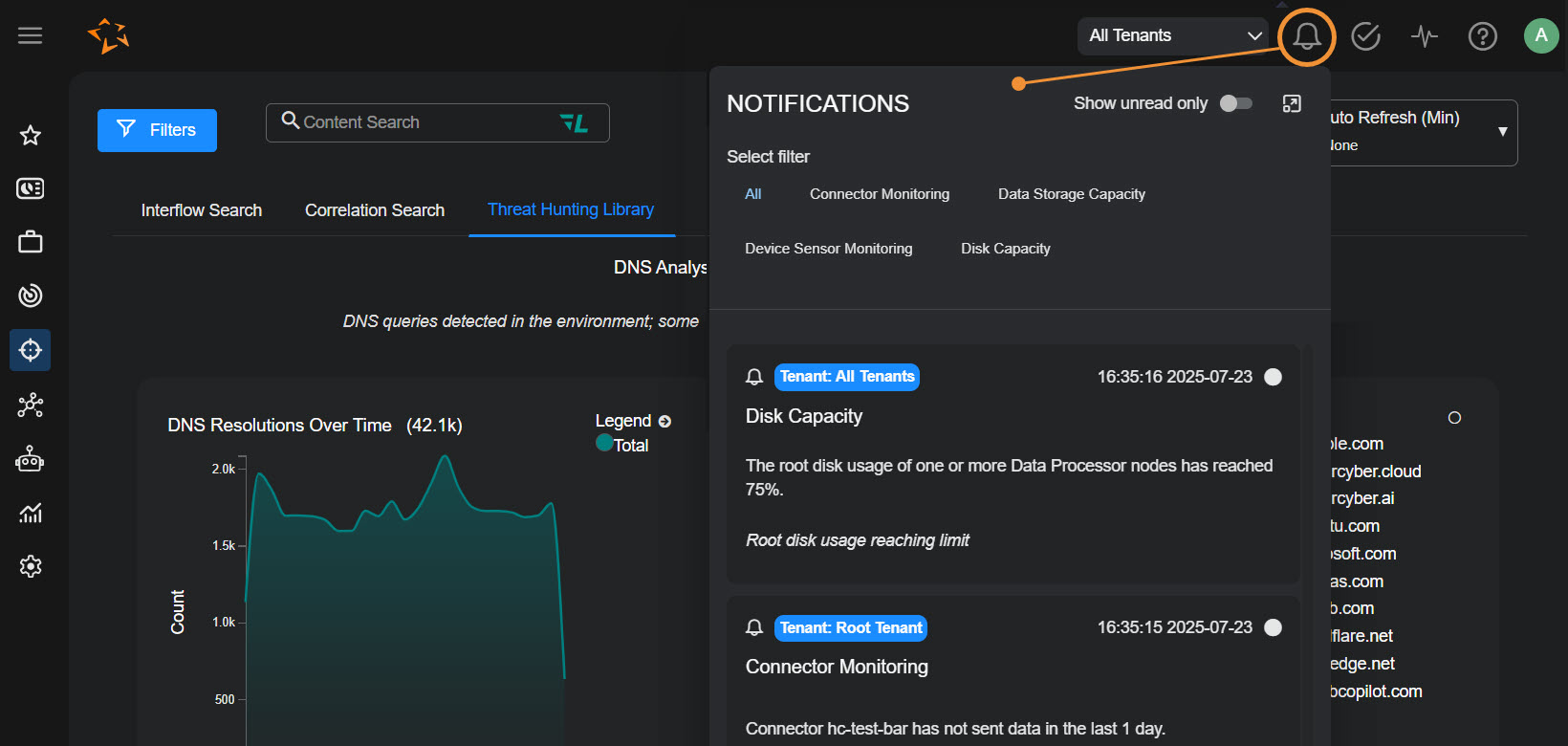 Cluster Health – Find out proactively when either the Data Analyzer (DA) or Data Lake (DL) cluster's health is in the red state.