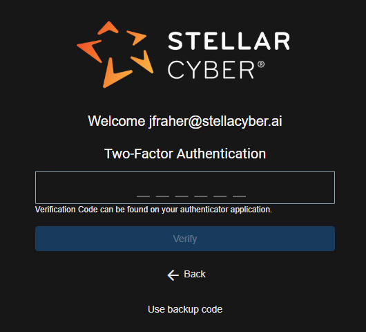 5. Enter that authenticator code in Stellar Cyber and then select Verify.