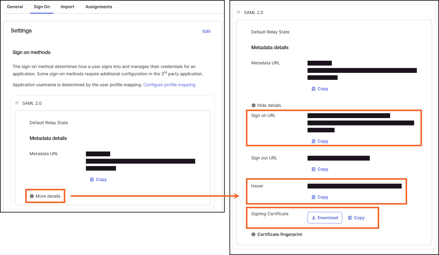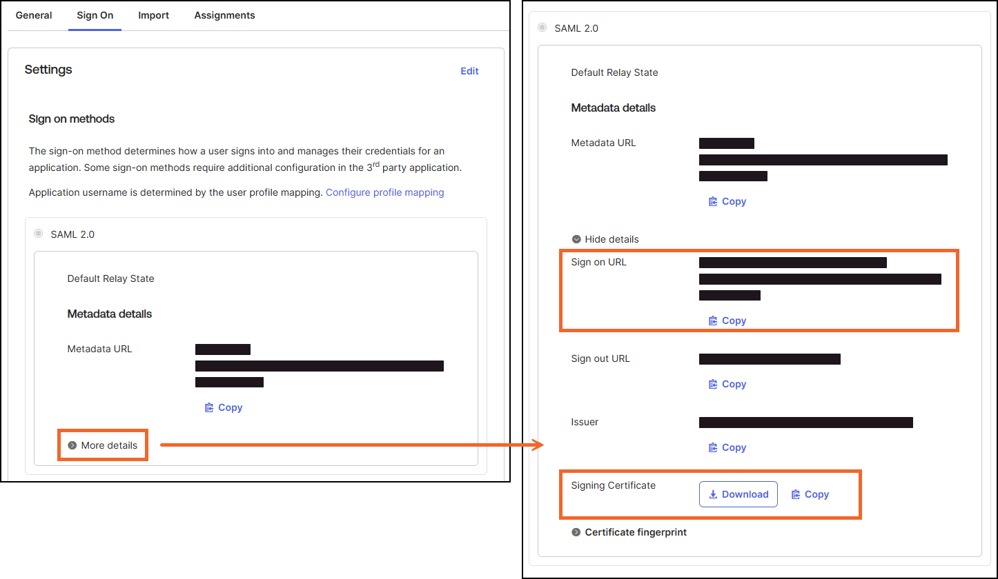 10. Copy the Sign on URL and download the signing certificate (X.509 certificate).