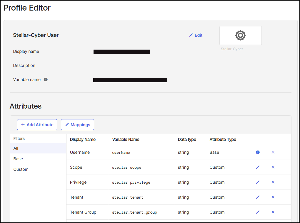 These attributes let you manage authorization for Stellar Cyber users (not applicable for per-tenant SSO).