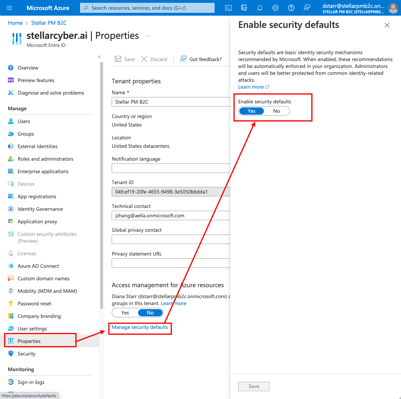 1. Browse to Microsoft Entra ID > Properties.