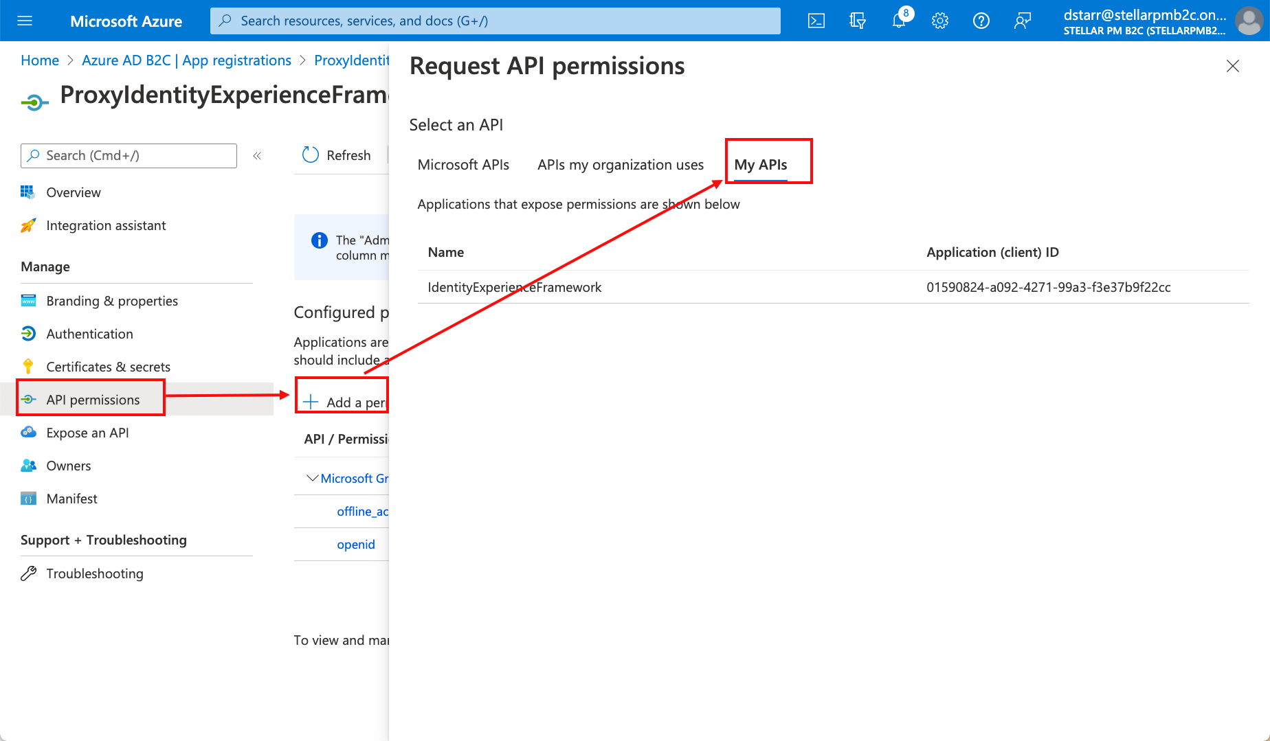 Application (Client) ID for IdentityExperienceFramework