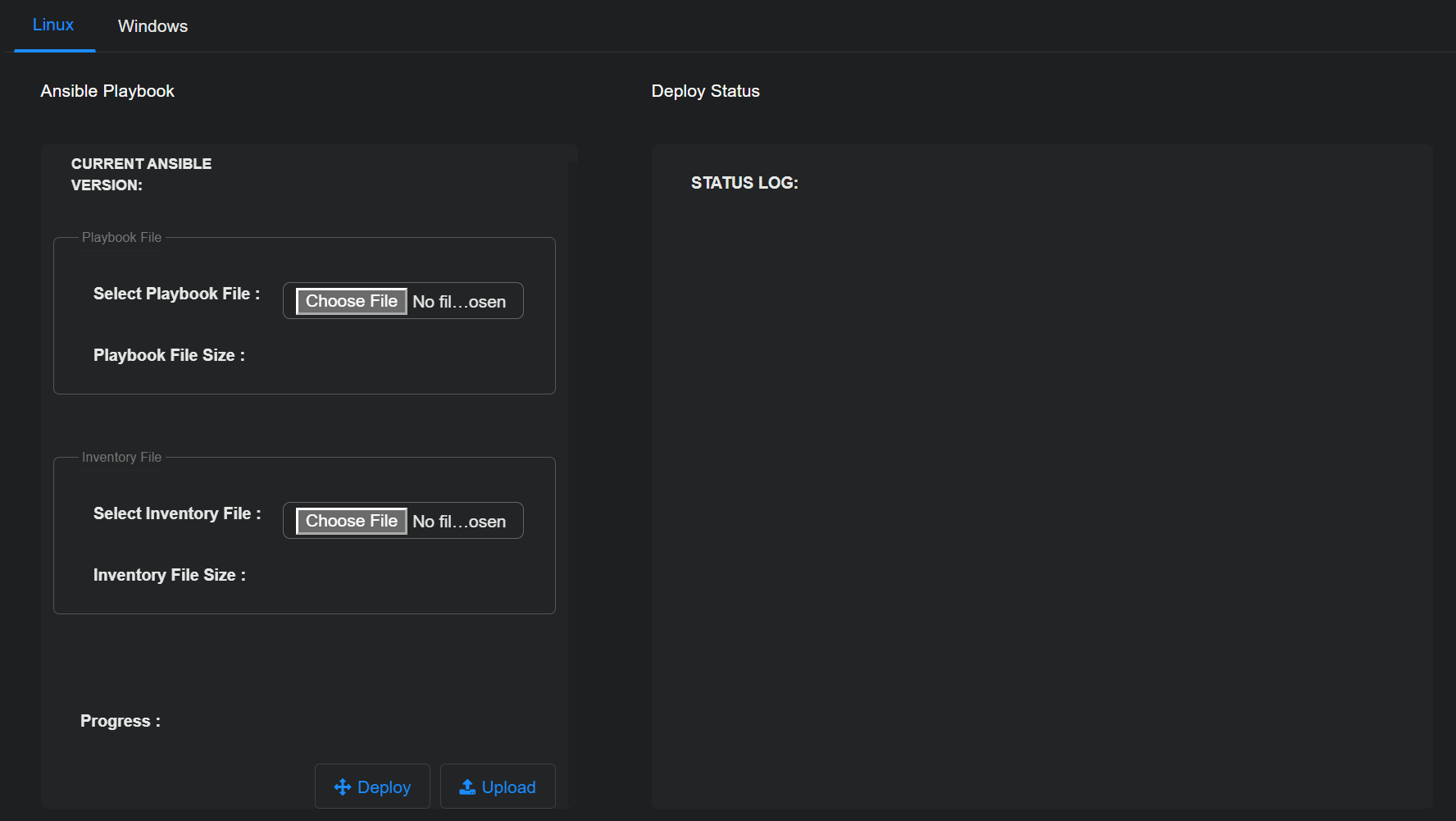 • Deploy – Select to initiate execution of the Ansible playbook.