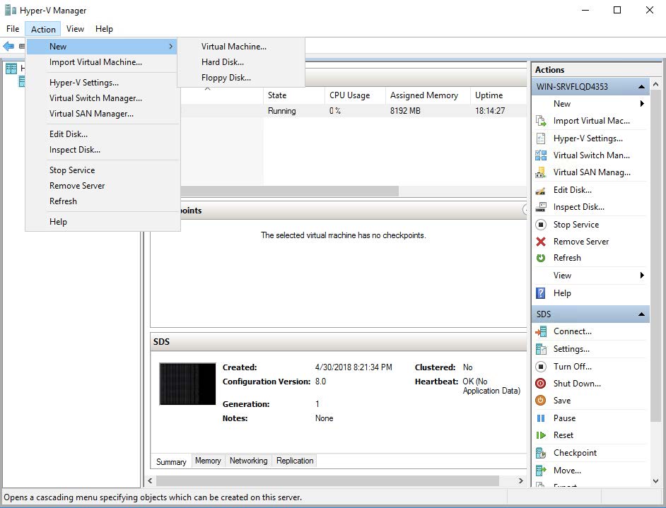Return to the Hyper-V manager and select Action | New | Virtual Machine....
