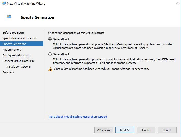 Enter the Generation parameter. The guest Operating System is a 64-bit OS so "Generation 1" is a good choice as shown in the following image.