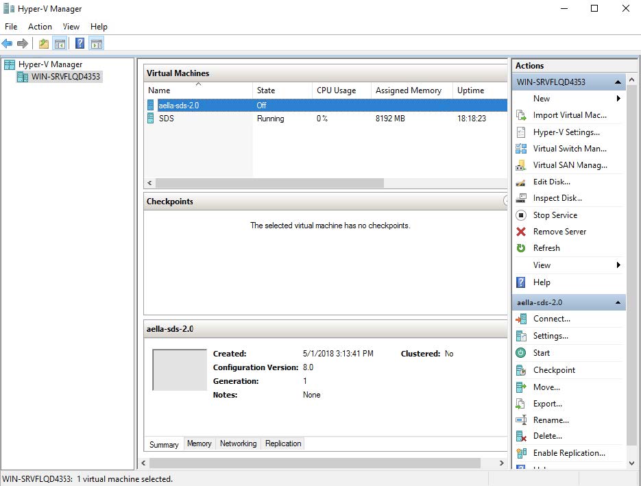 At this point the creation of the VM is complete and it should appear in the Hyper-V Manager screen in a manner similar to the following image.